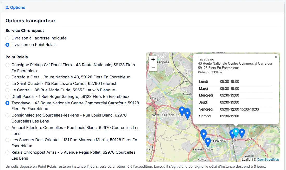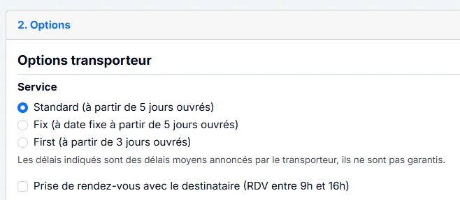 Choix du transporteur lors de votre demande de sortie